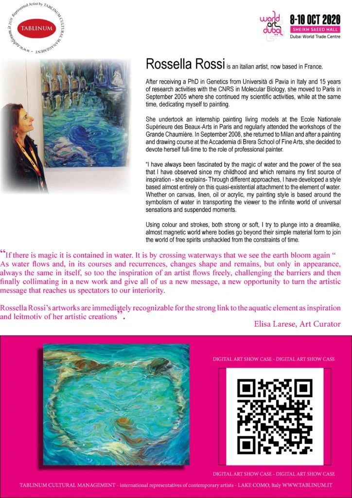 Rossella Rossi will participate in the World Art Dubai 2020, from October 8-10, being held at the World Trade Center in Dubai with Tablinum Cultural Management.