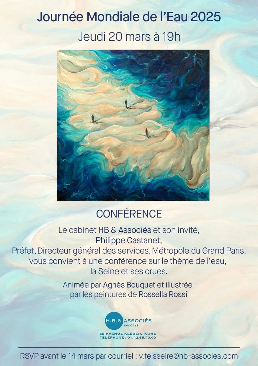 Pour la quatrième édition de la Journée mondiale de l’Eau célébrée au sein de son cabinet, Gilles Hittinger-Roux et la Galerie Roanne de Saint-Laurent ont organisé, avec notre concours, une soirée d’exception traversée par la menace d’une grande crue en juin 2025, réplique centennale de celle de 1910. Sujet traité avec passion par Philippe Castanet, ancien préfet de Lozère et Directeur des finances de la @prefpolice de Paris, aujourd’hui Directeur général de la @metropole_du_grand_paris . Sujet anxiogène s’il en est mais très fortement anticipé par l’État, car la menace en est renforcée par le dérèglement climatique auquel nous assistons (quasi) tous les jours... Sujet apaisé également par le travail sublime de Rossella Rossi, artiste italienne de renom, enfant chérie de la Méditerranée qui nous dévoilait une nouvelle série de toiles, ses Nocturnes, éclairant la manifestation de son sourire et de son amour pour l’élément source de nos bonheurs et de nos tracas : L’Eau.